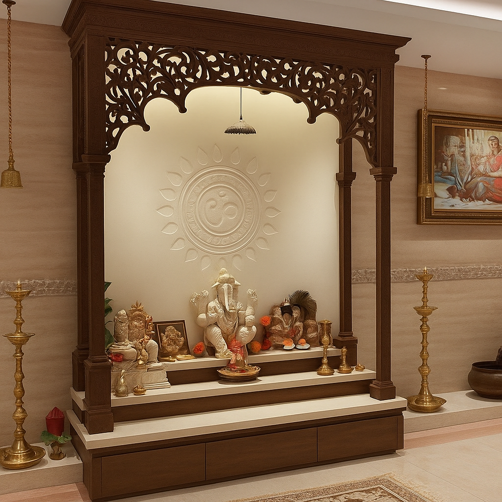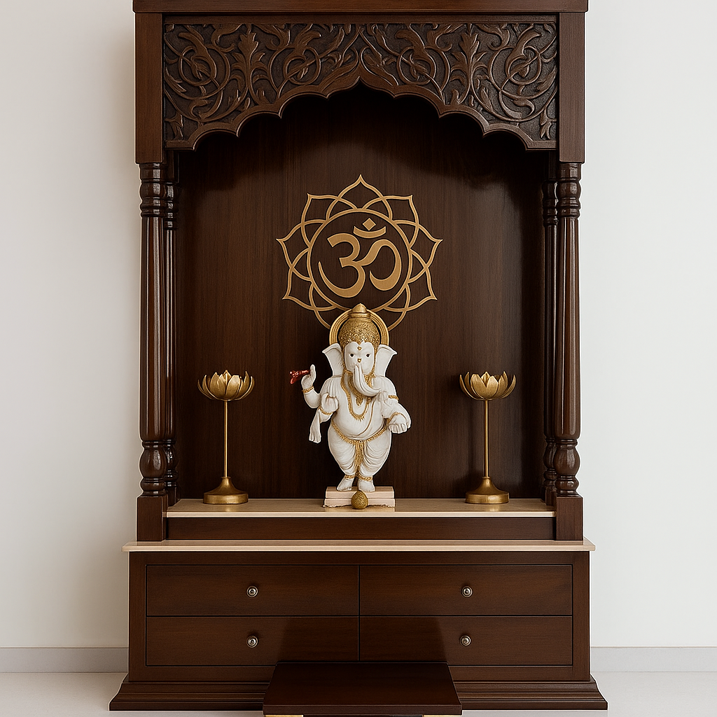 Traditional Wooden Ganesh Mandir with Om Lotus Design