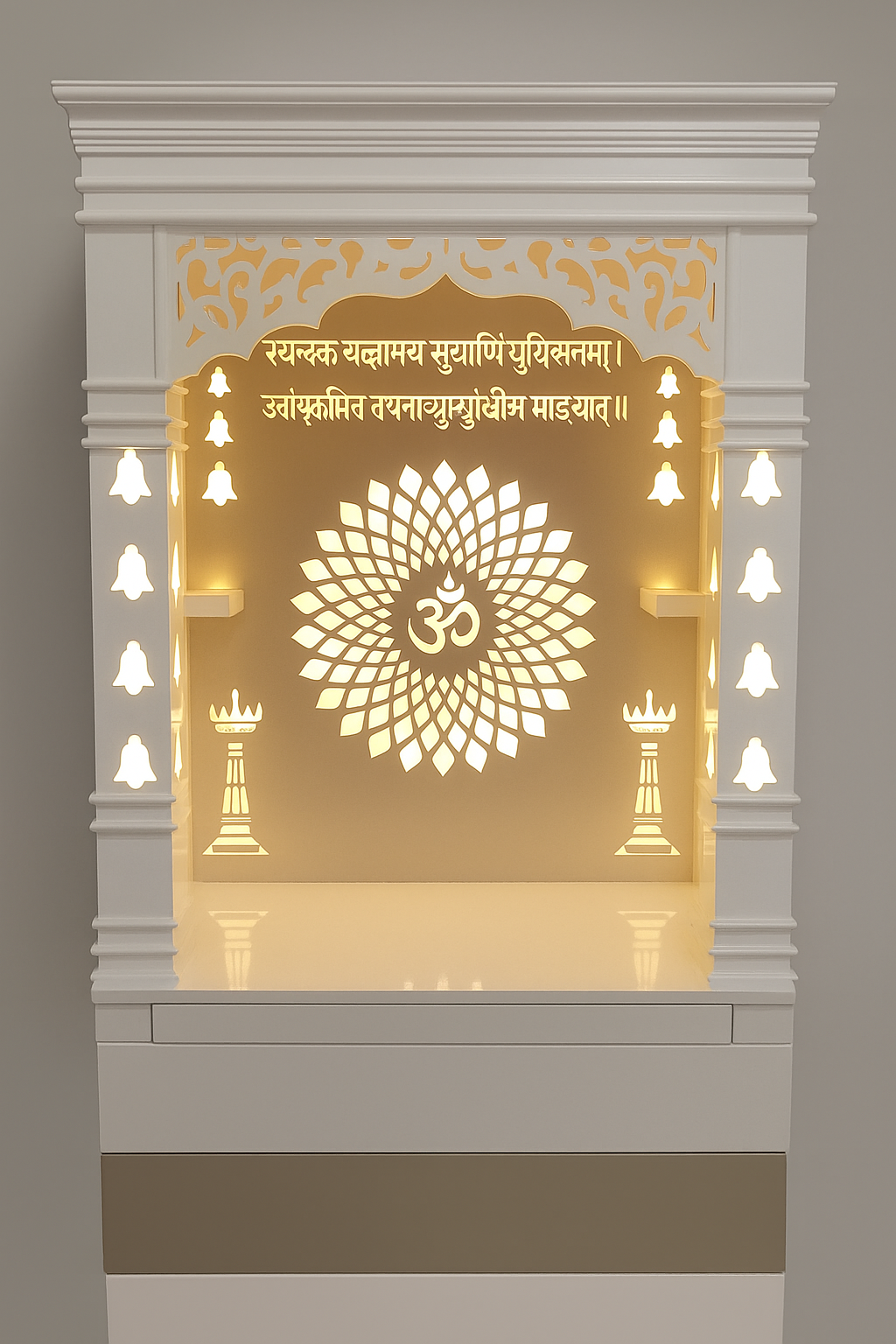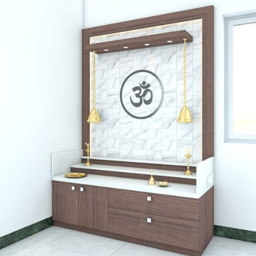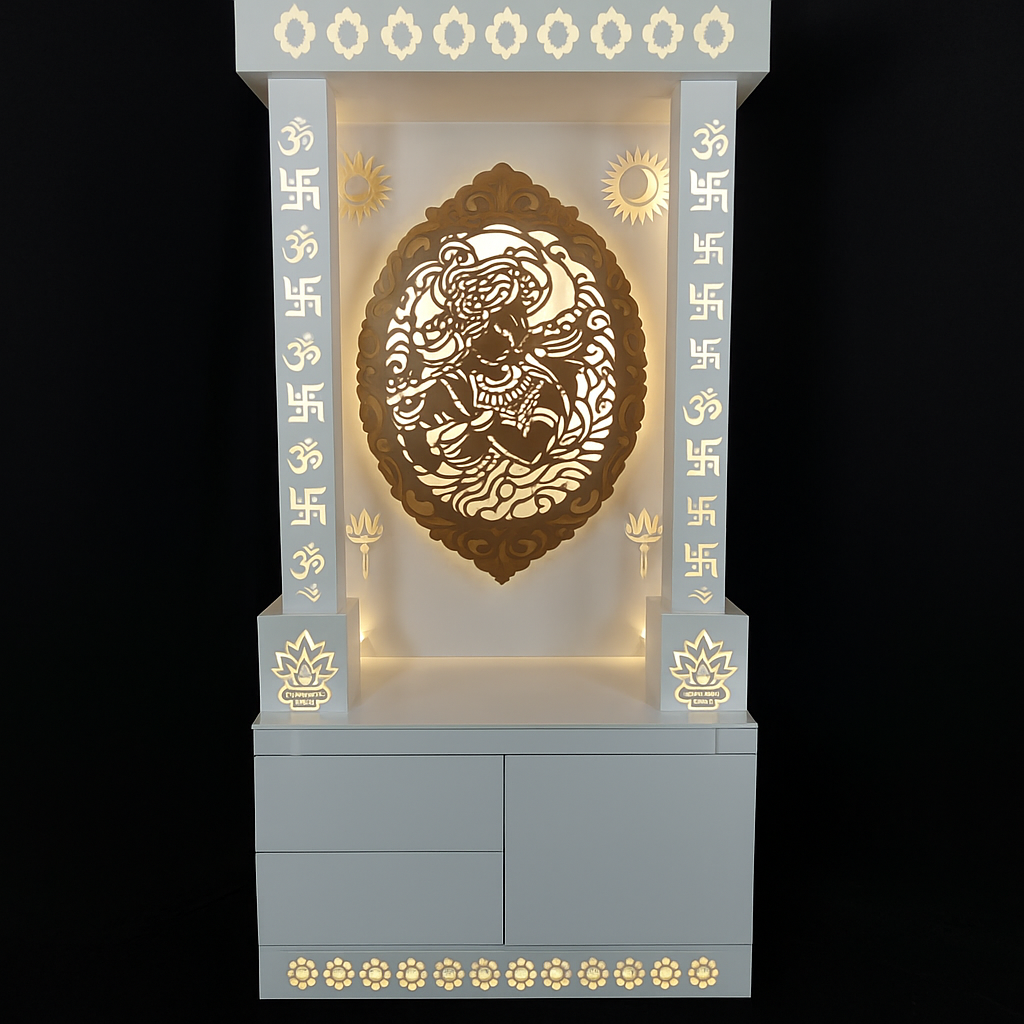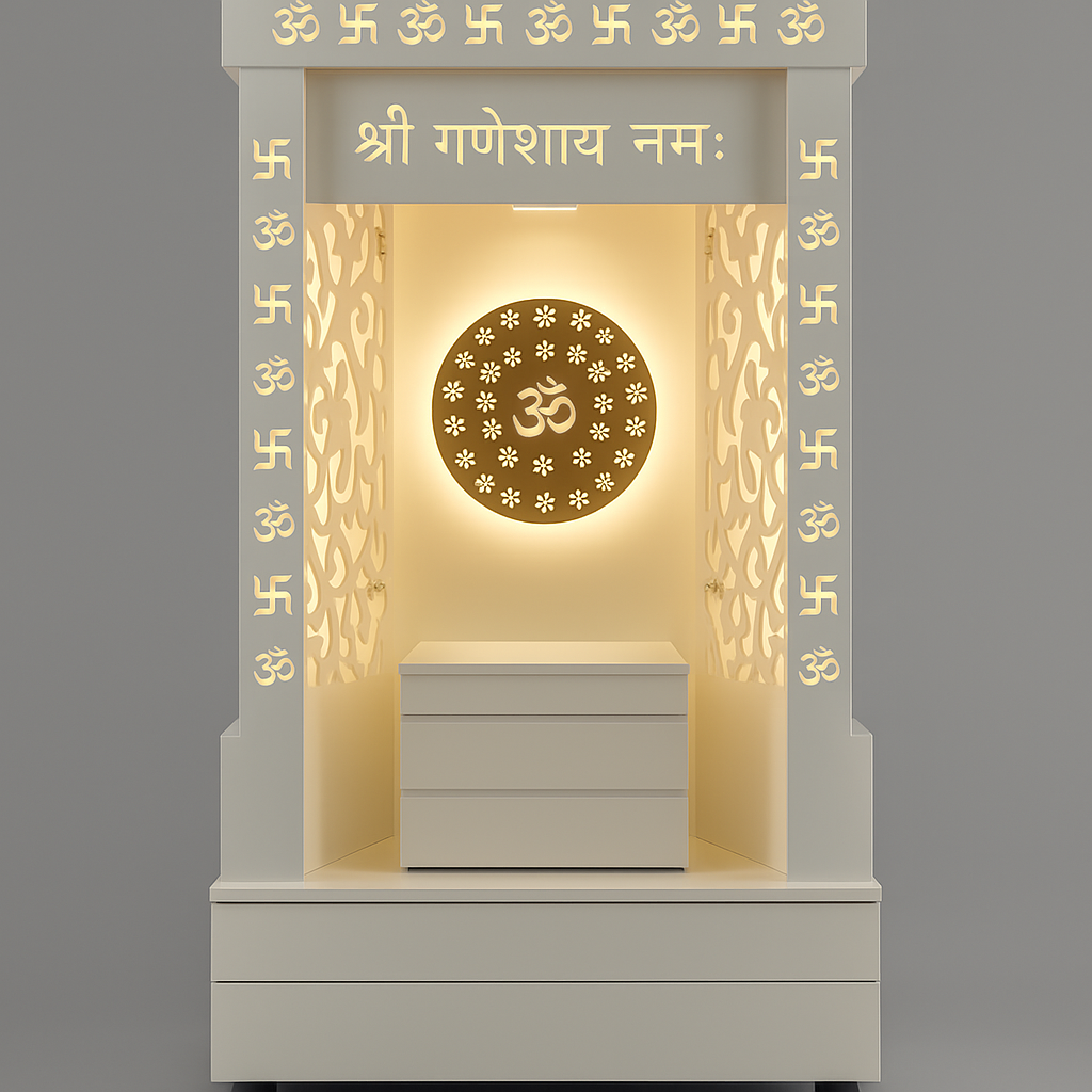 Wall-Mounted Mandir with White Background & Lotus Om