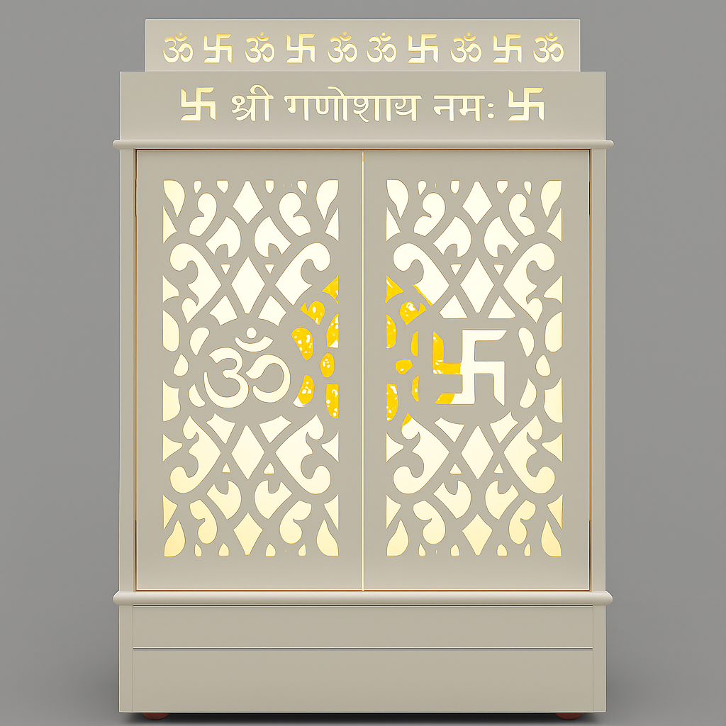 Door Mandir with Om & Swastik Jali Design (Outside)